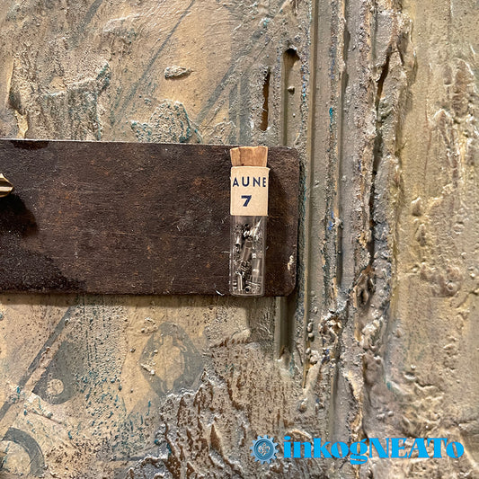 CREATE AND MEASURE – Mixed Media Artwork Blending Antique and Modern Elements