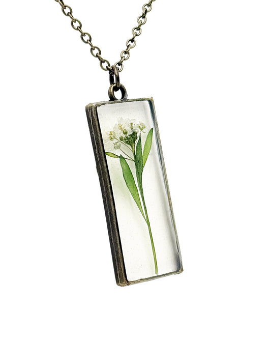 Always have a bouquet of flowers with you while wearing one of these necklaces! Inspired from nature, the Botanicals collection features real, dried pressed flowers, leaves and stems in a variety of shapes and sizes. Each Botanical is made from an open back mixed metal bezel, featuring your favorite blooms and stems layered within UV safe resin that resists yellowing over time. Make one of these necklaces your favorite accessory to pair with any outfit, from casual to formal. Always eye catching and sure to be a conversation starter each time you wear it!