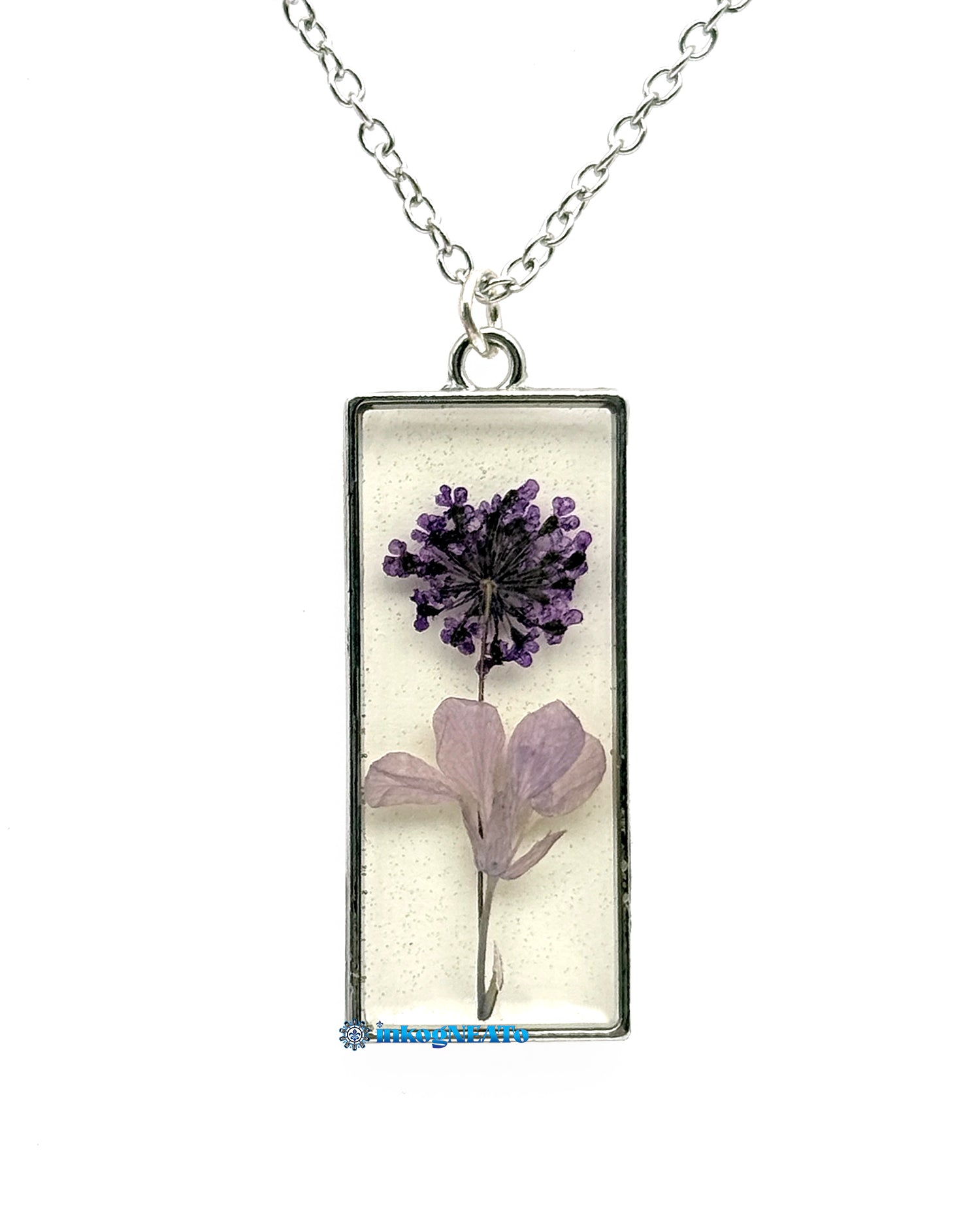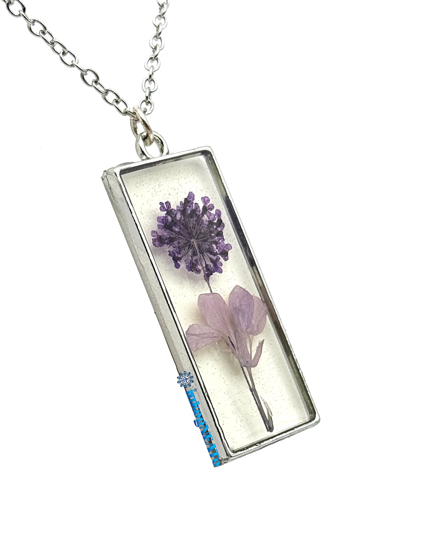 Inspired from nature, the Botanicals collection features real, dried pressed flowers, leaves and stems in a variety of shapes and sizes. Each Botanical is made from an open back mixed metal bezel, featuring your favorite blooms and stems layered within UV safe resin that resists yellowing over time. Make one of these necklaces your favorite accessory to pair with any outfit, from casual to formal. Always eye catching and sure to be a conversation starter each time you wear it!