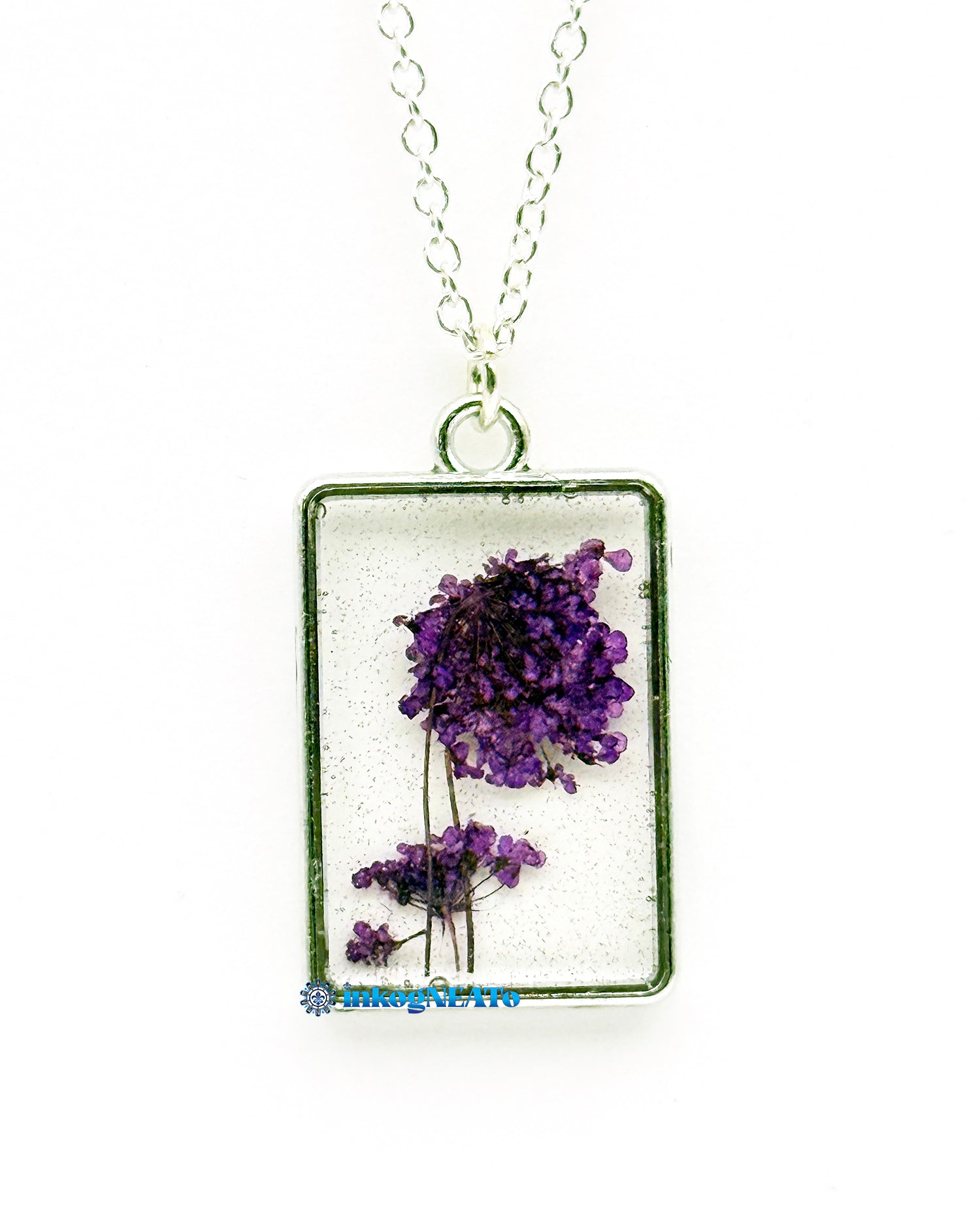 Inspired from nature, the Botanicals collection features real, dried pressed flowers, leaves and stems in a variety of shapes and sizes. Each Botanical is made from an open back mixed metal bezel, featuring your favorite blooms and stems layered within UV safe resin that resists yellowing over time. Make one of these necklaces your favorite accessory to pair with any outfit, from casual to formal. Always eye catching and sure to be a conversation starter each time you wear it!