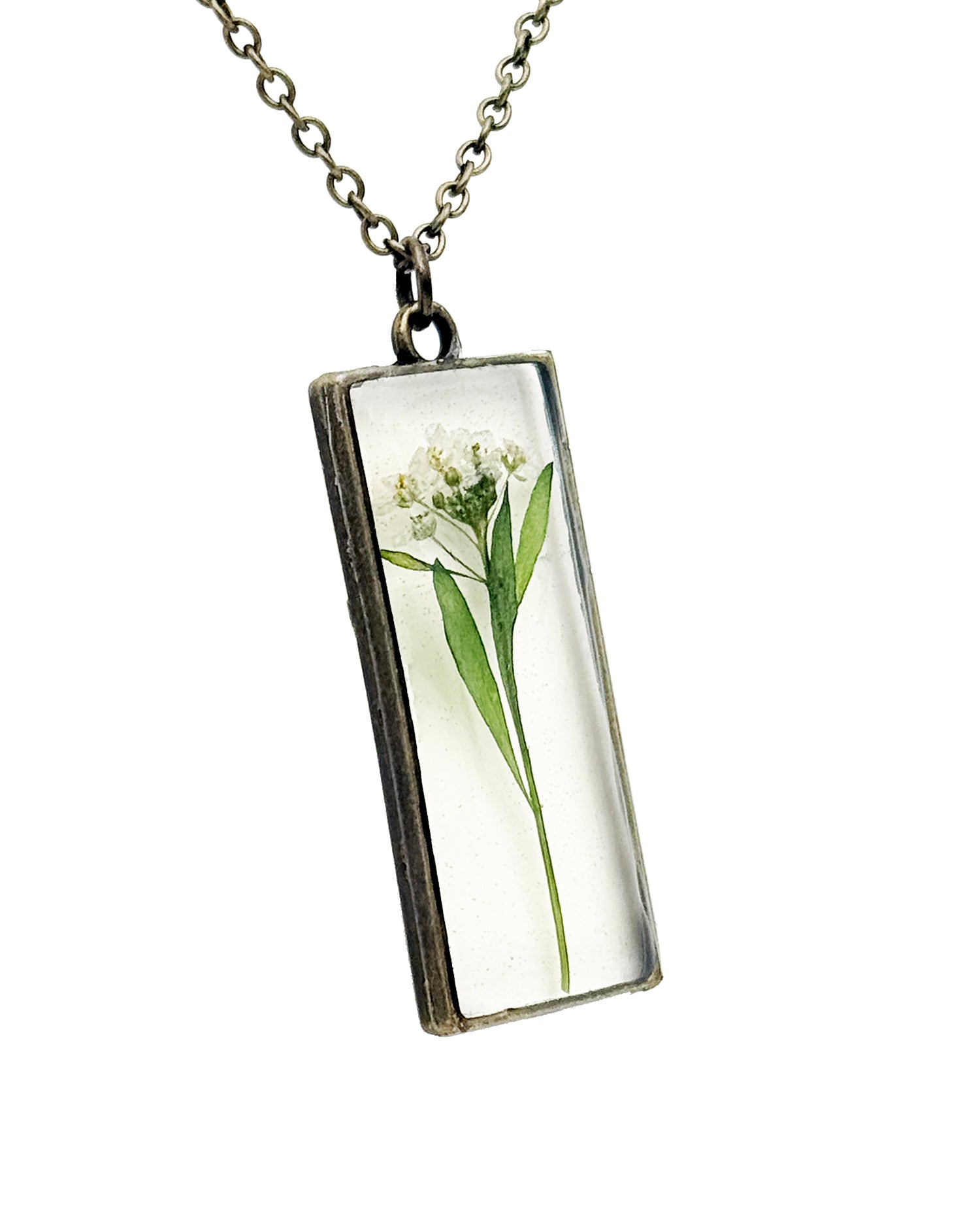 Inspired from nature, the Botanicals collection features real, dried pressed flowers, leaves and stems in a variety of shapes and sizes. Each Botanical is made from an open back mixed metal bezel, featuring your favorite blooms and stems layered within UV safe resin that resists yellowing over time. Make one of these necklaces your favorite accessory to pair with any outfit, from casual to formal. Always eye catching and sure to be a conversation starter each time you wear it!