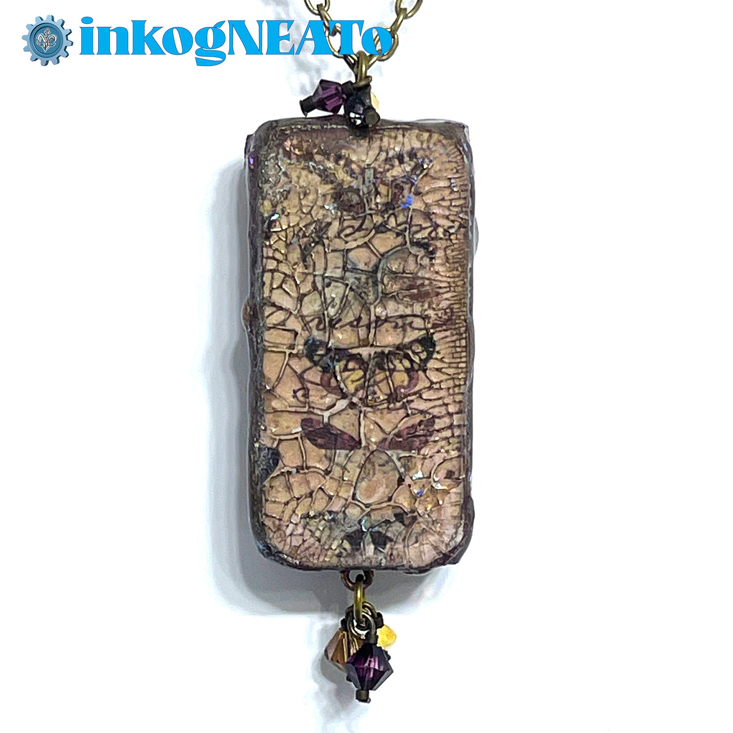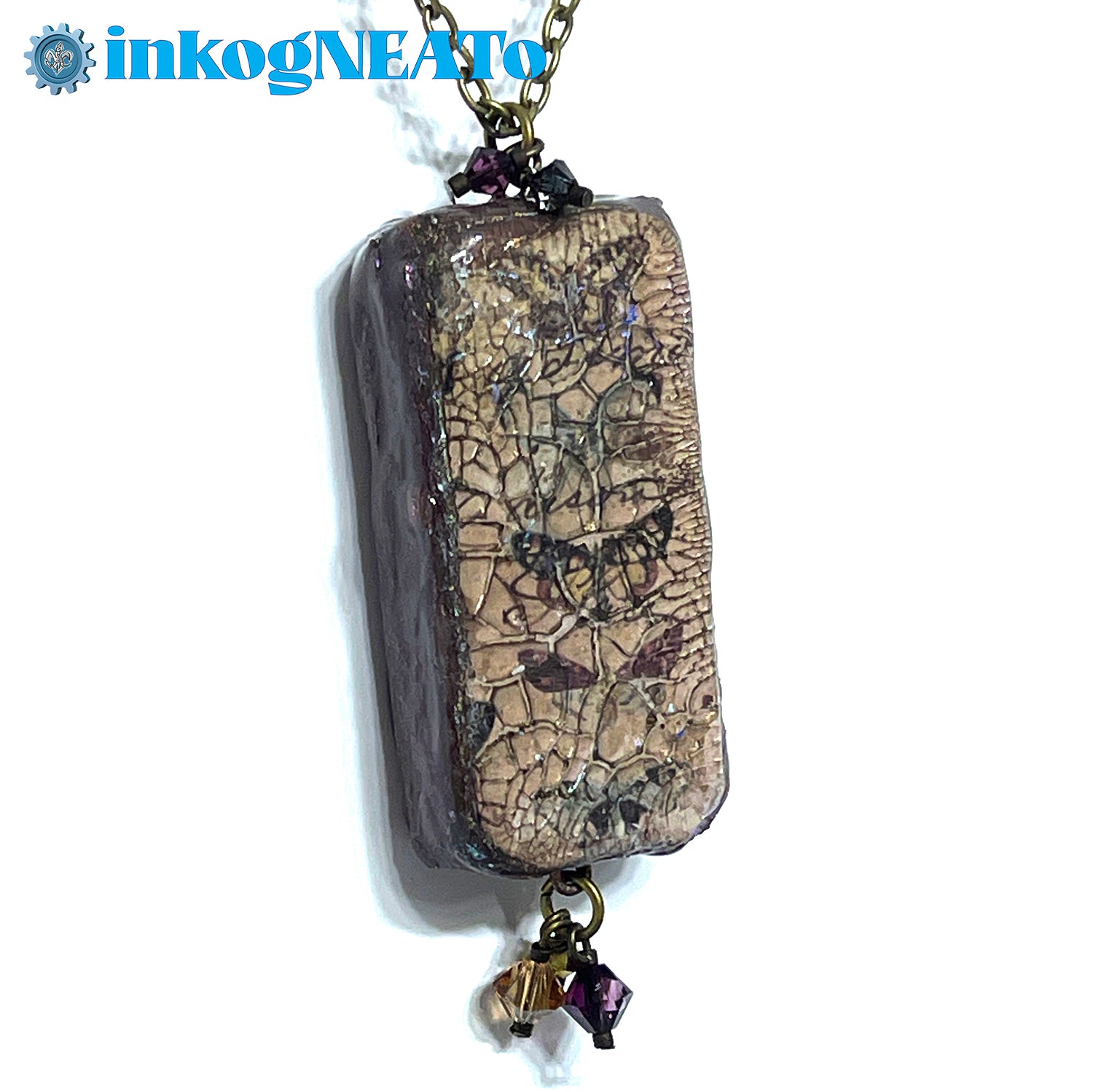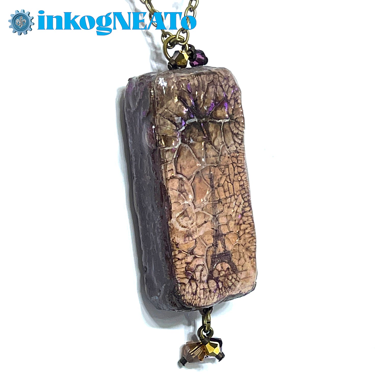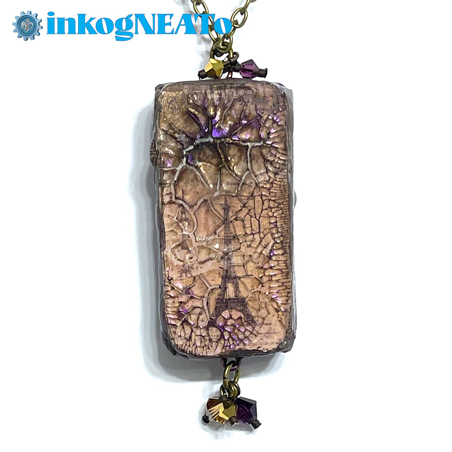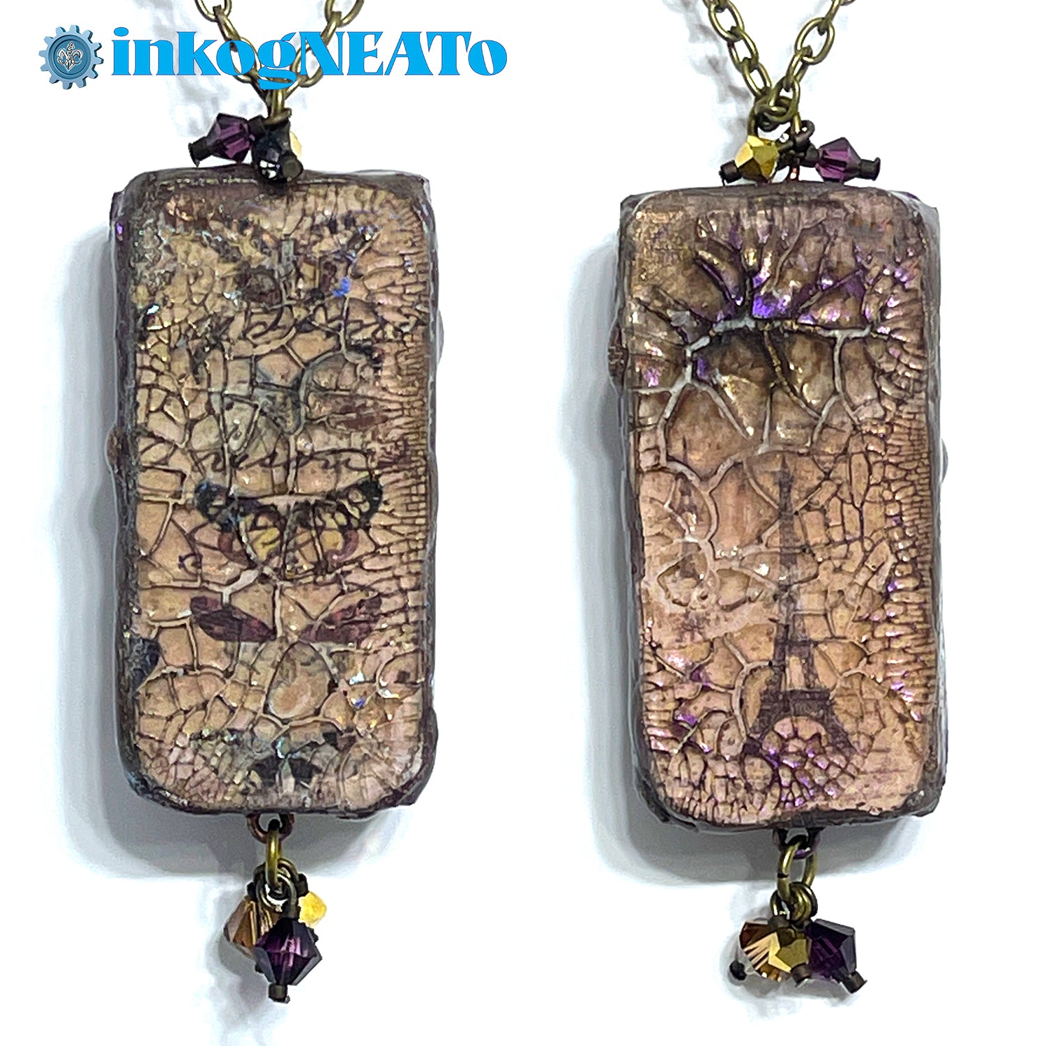 DUO Butterflies in Paris features printed backgrounds with a beautiful crackle finish with added texture on the sides that wraps around the edges to the front and backside of the piece, highlighted with a brilliant purple mica finish. One side features a row of butterflies, with the Eiffel Tower on the opposite side. Embellished with Swarovski crystal highlights at the top and bottom in coordinating colors.