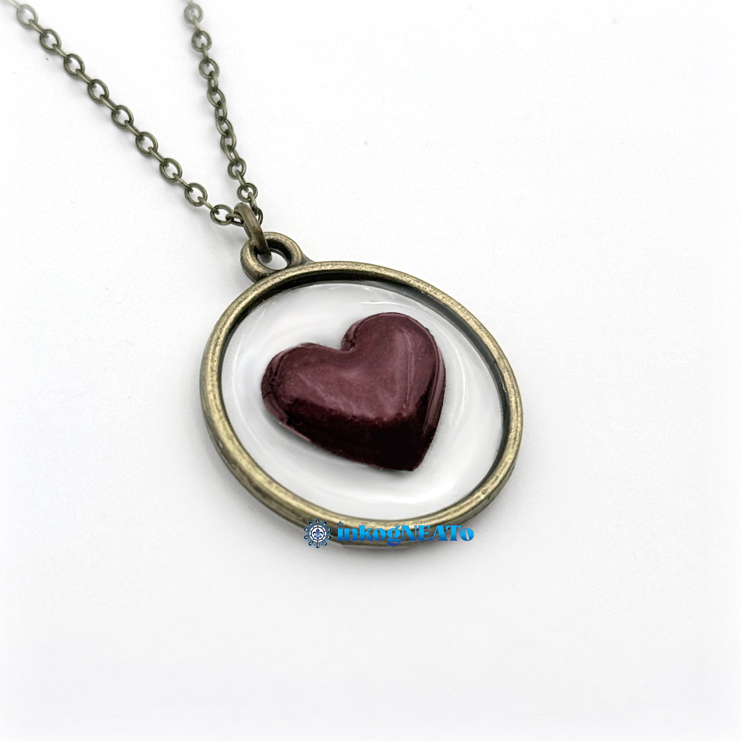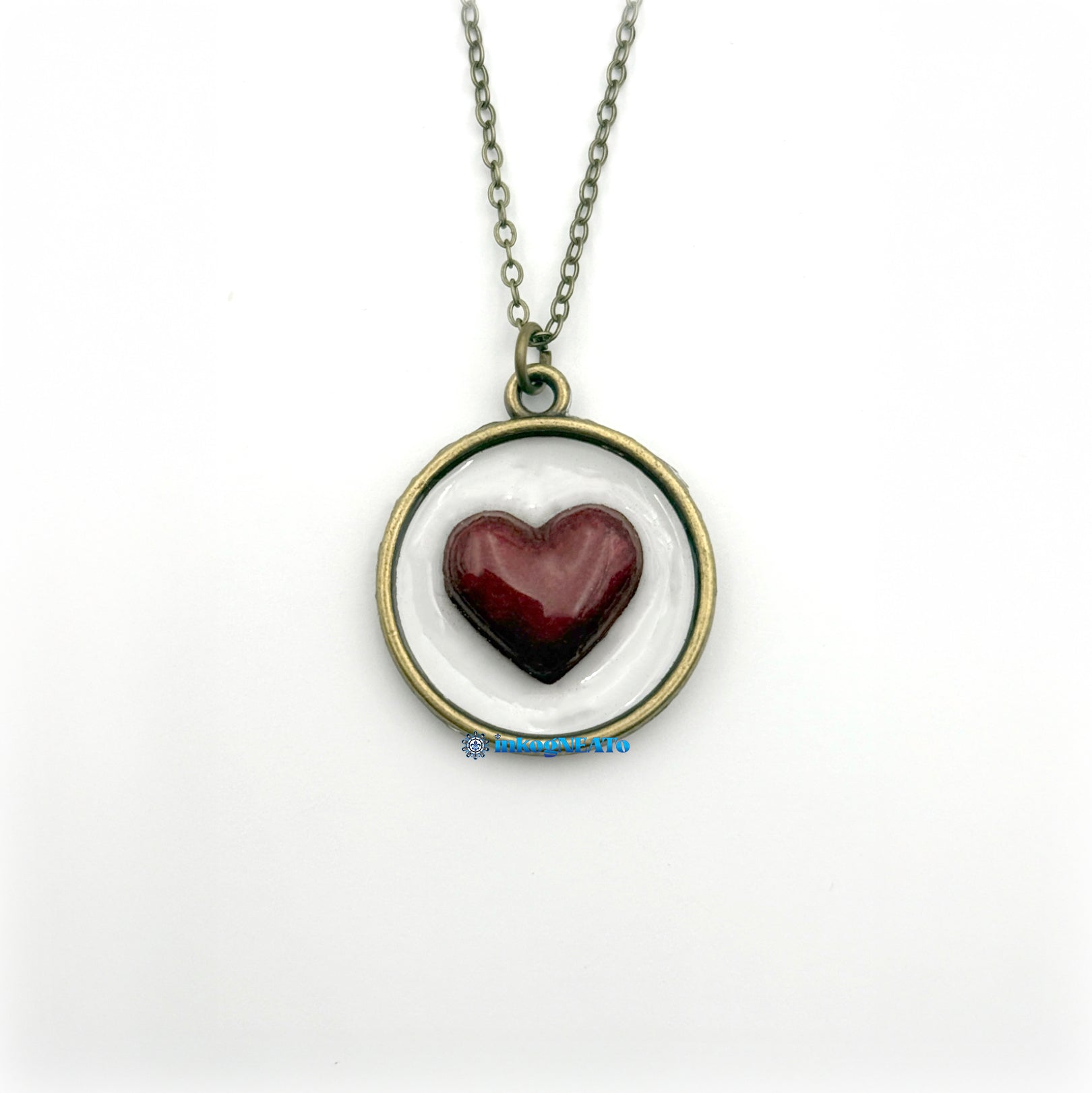 Clean lines and classic tones make this piece a year-round favorite, especially when worn close to the chest (where it belongs). The chain is color-matched in antique brass, and the resin used is non-UV, meaning it’s built to last — no yellowing, no brittleness. Just timeless devotion, one gear-less beat at a time.