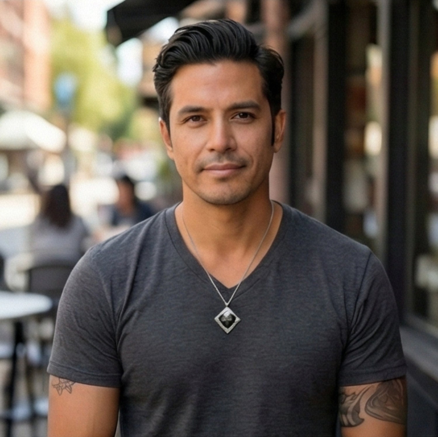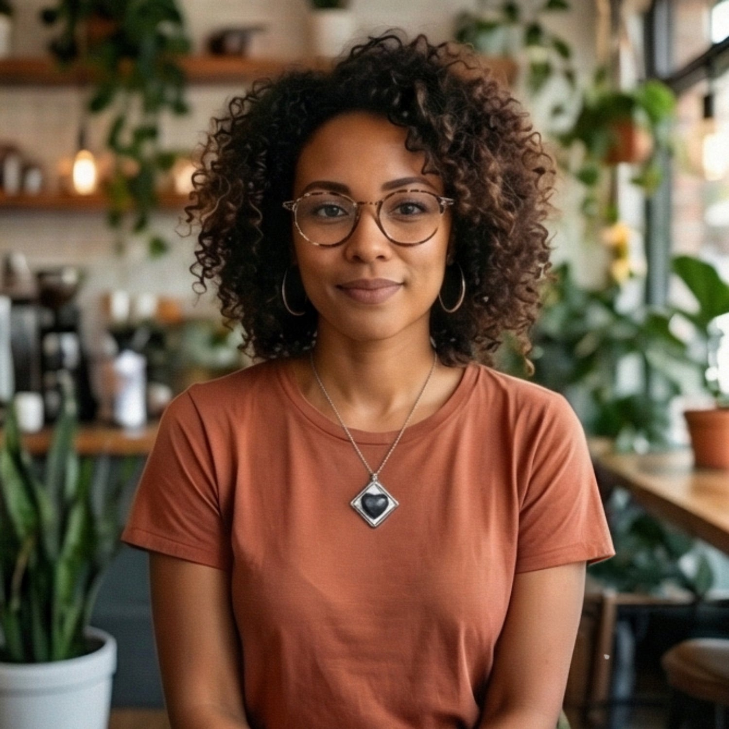 There’s a quiet kind of power in simplicity, and this piece holds it in spades. Set in a silver-toned diamond bezel, a single handmade heart — dark as obsidian and flecked with a cosmic shimmer — seems to pulse with silent emotion. It evokes resilience, mystery, and the beauty of a heart forged through shadow and shine. A modern talisman for those who’ve walked through fire and come out glowing.