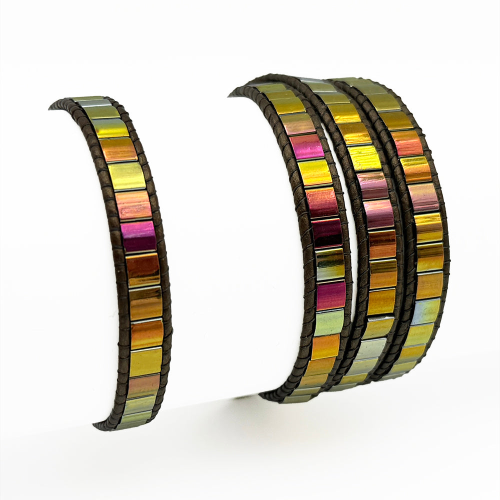 TILA Bracelets are created using Japanese Tila beads, which are two holed square beads known for their exception quality and durability including color that never fades over time.