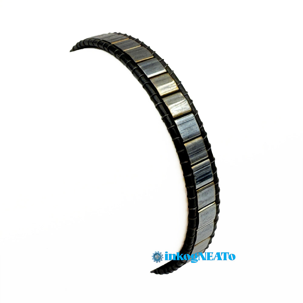 TILTED BRACELETS feature layered Tila beads, giving them a "tilted" appearance because of the way they stack upon one another. Designed to resemble a cuff, these bracelets feature a claw clasp and jump rings to allow for sizing versatility. Tilted style bracelets are named for how many rows of tila beads make the bracelet : Single (1 row), Double (2 rows) or Triple (3 rows).